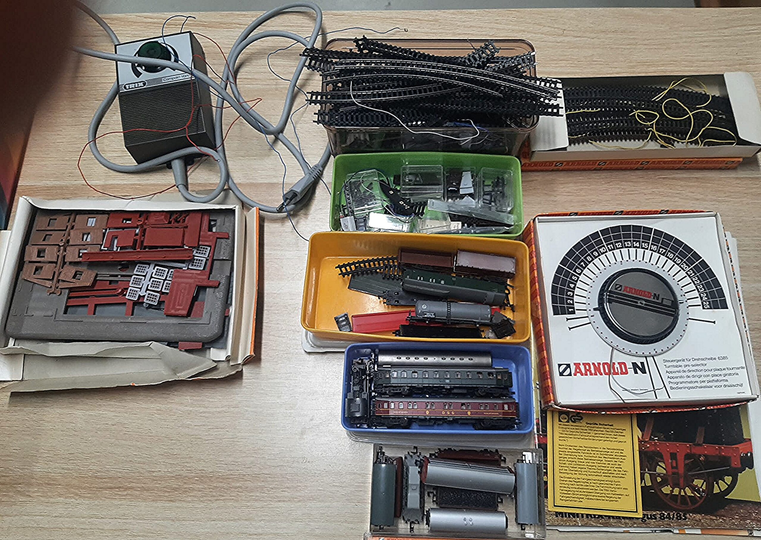Ook hier ging het om een verzameling materiaal in schaal N. Een aantal locomotieven, rijtuigen, wagons, een locomotiefdraaischijf en een aantal huisjes. Nadat we een afspraak hadden gemaakt hebben we Willy een bezoek gebracht en daar geconstateerd dat het om best een forse hoeveelheid ging.